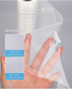 This embossed bag and roll is designed for the vacuum function in common kitchen use,which is much easier to vacuum than the plain bags because of the texture.